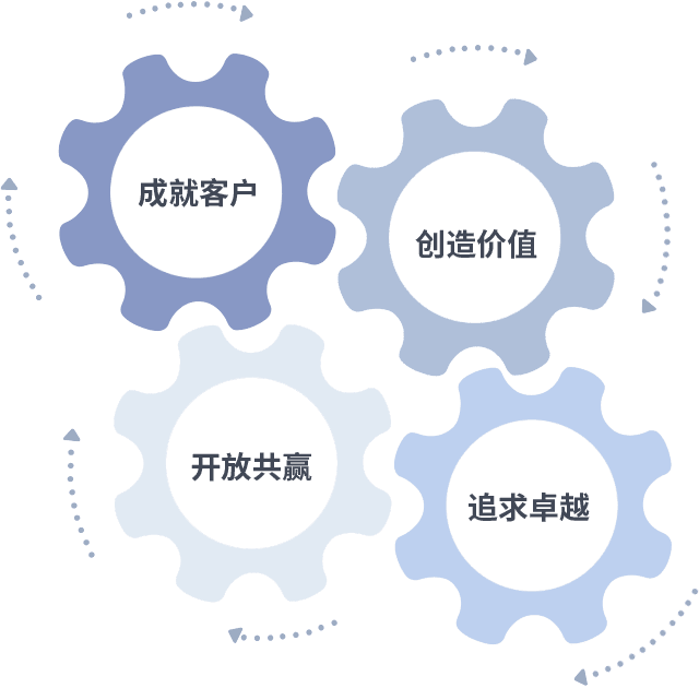 成就客户是一切决策的出发点,,,,创造价值是衡量所有工作的标准,,,追求卓越是亚星做事做人的态度,,,,开放共赢是亚星的格局也是最终的结果。。。。价值观的齿轮环环相扣,,推动着组织里的每个人不断向前。。